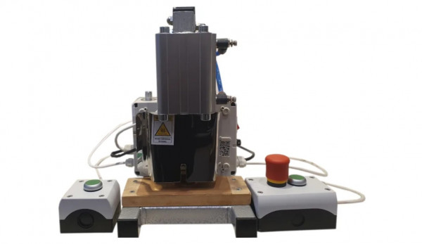 Zgrzewarka na stół, pneumatyczna, stałocieplna. Zgrzewarka posiada regulację temperatury za pomocą regulatora mocy. Zgrzewarka w pakiecie folii wykonuje otwór a poniżej otworu pneumatyczny nóż robi perforacje. Zgrzewarka sprawdza się przy różnorakim materiale.