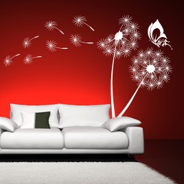 Naklejka ścienna Dmuchawce pomoże Ci szybko zmienić wystrój Twojego domu.Motyw roślinny pasuje zarówno do salonu jak i do sypialni.Zestaw zawiera aż 7 lotek i pięknego motylka. Wzór możliwy do kupienia w postaci szablonu malarskiego.Cena zależy od rozmiaru: od 79 zł do 189 zł.
