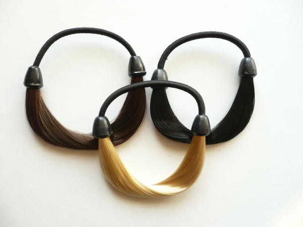 Gumki z włosów sztucznych, pakowane po 3 szt. - mix kolorów