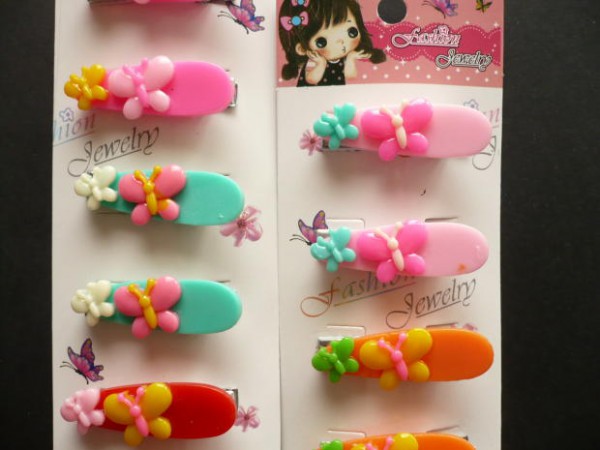 Motylki plastikowe na klipsie metalowym, pakowane po 12 szt.