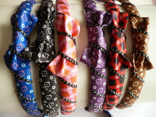 Opaski obciągnięte materiałem, z kokardką, sprzedaż po 6 szt. - mix kolorów