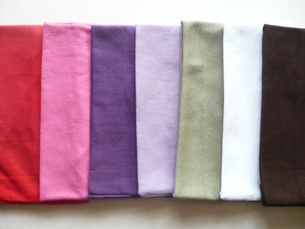 Przepaski z bawełny z dodatkiem lycry, dostępne różne kolory, szerokość 5-10 cm.
