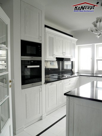 Fronty: drewno jesion bielony, blat granitowy