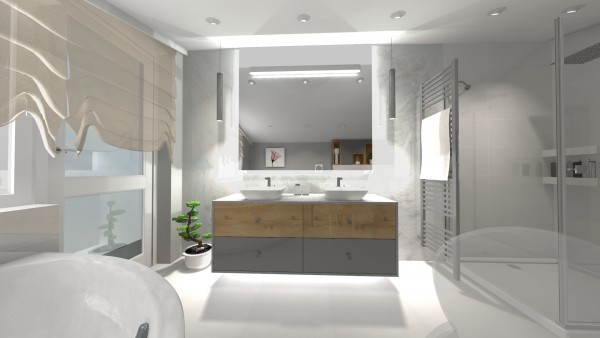 Proponujemy kompleksową aranżację łazienki, wraz z wizualizacjami 3D, doborem ceramiki i armatury, płytek, rozrysowaniem układu płytek, schematem oświetlenia oraz wszystkich przyłączy prądu i wodno-kanalizacyjnych.