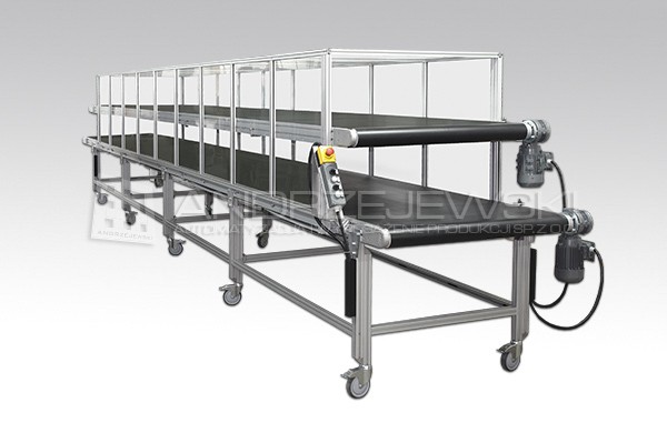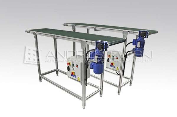 Przenosniki taśmowe posiadają ramę nośną oraz konstrukcję wsporczą wykonaną na podstawie odpowiednio dobranych profili aluminiowych zaś układ napędowy oraz taśma transportująca dobierana jest indywidualnie dla potrzeb Klienta.