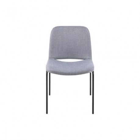 Wygodne, tapicerowane, szare krzesło do domowej jadalni lub biurowej sali konferencyjnej, miękka, gładka w dotyku tkanina, szerokie siedzisko zapewnia wysoki komfort siedzenia.