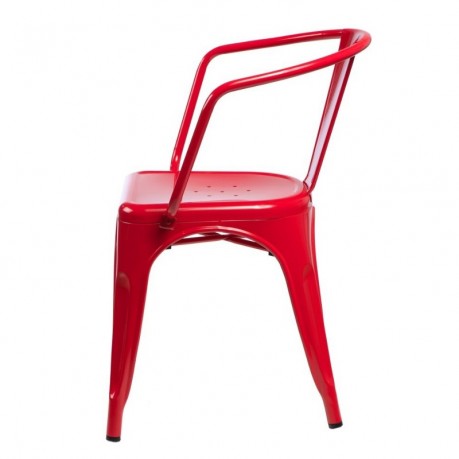 Krzesło o industrialnej formie inspirowane projektem Tolix Xaviera Paucharda w retro klimacie. Krzesło urzeka swoją surową wręcz przemysłową optyką. Mocne i nie do zdarcia sprawdzi się zarówno w kuchni czy jadalni, restauracji, barze, polecane również do ogrodu, czy na taras lub werandę. Łatwe w aranżacji, solidna jakość, wygodne wysokie oparcie, nietypowa stylistyka nie tylko dla indywidualistów... Dostępna szeroka oferta kolorystyczna, możliwość sztaplowania.