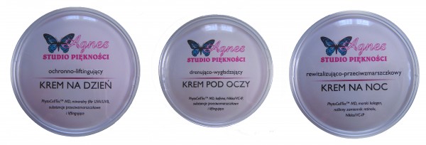 Firmowe kosmetyki naturalne, kremy: na dzień, na noc, pod oczy.