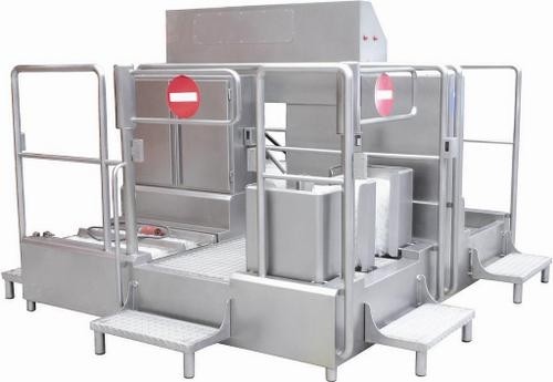 Zintegrowana stacja higieny składa się z dwóch modułów, jeden zaprojektowany został jako wejście (moduł dezynfekujący), a drugi jako wyjście z hali produkcyjnej (moduł myjący).