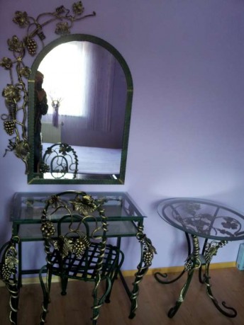 Piękny zestaw mebli do sypialni, salonu, i każdego innego wnętrza Twojego domu. Seria Grono- czyli wzór z winogronem, to bardzo ekskluzywna linia ręcznie wykonanych mebli , ogrodzeń, balustrad i wszelkich dodatków do wnętrza. Bardzo estetyczne wykonanie, piękna kolorystyka, dokładny wygląd mebla, czy innego elementu, jego wymiar i kolor jest do uzgodnienia.