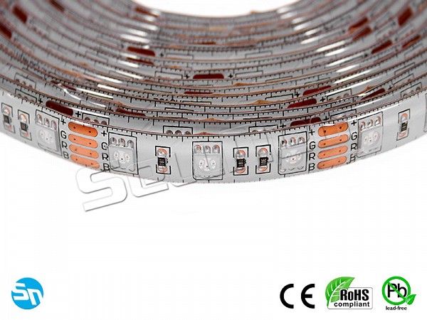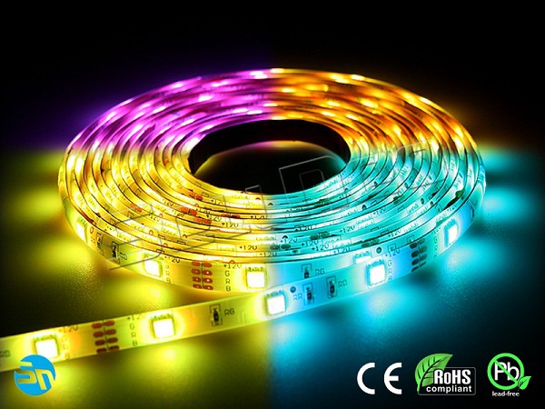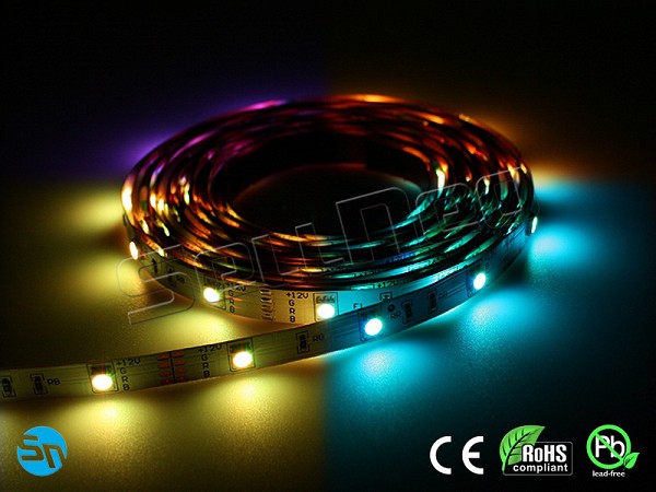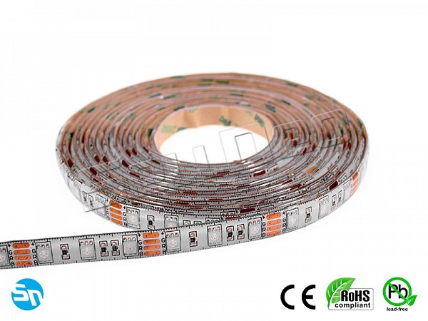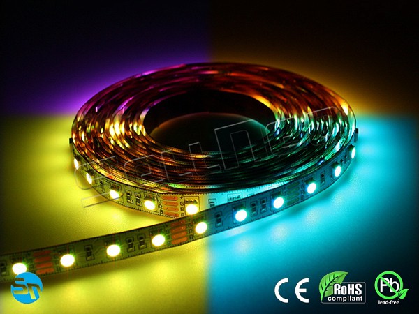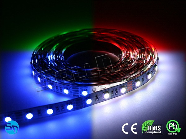 Taśmy RGB wyposażone w diody RGB SMD 5050 o trzech strukturach świecących zamkniętych w jednej obudowie. Taśmy RGB są w stanie emitować prawie każdą barwę światła, po odpowiednim wymieszaniu trzech podstawowych kolorów: R – czerwony, G – zielony, B – niebieski, za pomocą sterowników RGB. Taśmy fabrycznie podklejone są dwustronnie klejącą taśmą, która ułatwia montaż niemal do każdej powierzchni, a żywotność sięgająca 6 lat ciągłego świecenia wystarczy do następnego remontu mieszkania, biura czy domu. Dostępne są wersje o różnej gęstości diod: 150 diod/5 m oraz 300 diod/5 m.