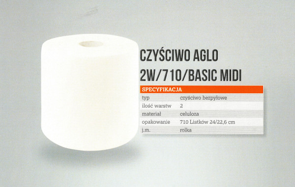 Czyściwo celulozowe, dwuwarstwowe, bezpyłowe. 710 listków, wymiary listka: 24/22,6 cm.