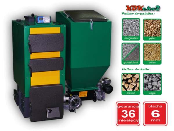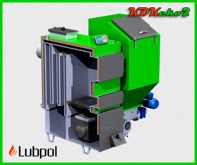 Kocioł typu KDKeko to nowoczesny produkt z podajnikiem retortowm. Należy do urządzeń grzewczych dwupaleniskowych z górnym spalaniem paliw stałych o wydłużonym obiegu spalin.Kocioł wyposażony jest w palenisko retortowe, do którego podawane jest paliwo z zasobnika za pomocą podajnika ślimakowego. Za pomocą wentylatora powietrze potrzebne do spalania doprowadzane jest w strefę spalania. Dodatkowym atutem tego kotła jest ruszt żeliwny, na którym można spalać paliwa stałe.Po zastosowaniu innowacyjnych rozwiązań, automatycznego systemu podawania oraz płynnego sterowania kotły te stały się alternatywą dla piecy gazowych i olejowych.Obsługa sprowadza się do okresowego uzupełniania paliwa w koszu zasypowym oraz ustawienia na sterowniku temperatury jaką chcemy uzyskać. Warunki te stwarzają wysoki komfort użytkowania.