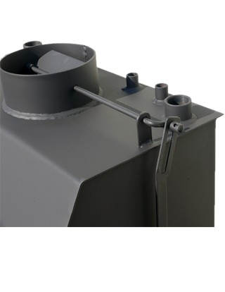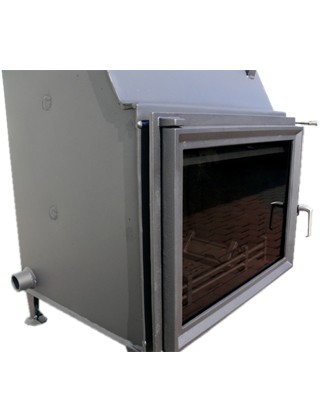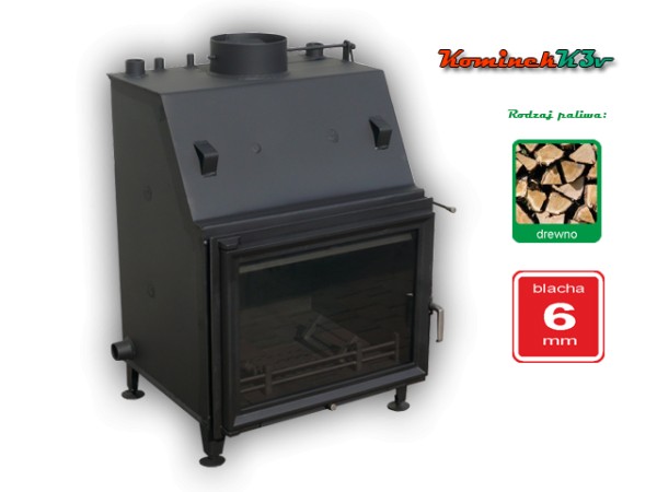 Do swojej produkcji włączyliśmy kominki z płaszczem wodnym. Kominek taki może być wykorzystywany jako główne źródło ogrzewania lub wspomagać źródło ciepła w instalacjach grzewczych. Kominek przystosowany jest do spalania drewna liściastego. Regulowany dopływ powietrza do komory spalania oraz zamontowany szyber umożliwiają pełną kontrolę nad procesem spalania czyli regulacją temperatury. W standardzie znajduje się również wejście do podłączenia dolotu powietrza z zewnątrz budynku. Zamontowana przepustnica może być sterowana ręcznie przy pomocy linki 1,5m lub automatycznie za pomocą mikroprocesorowego regulatora temperatury z przepustnicą. Regulacja taka odbywa się w sposób płynny na zasadzie pomiarów temperatury co może znacznie zmniejszyć zużycie drewna kominkowego.