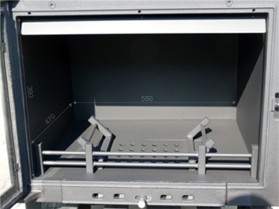 Korzyści: Wkład wyprodukowany ze stali kotłowej (P265GH) 6mm posiada: • wężownicę bezpieczeństwa • szyber (regulacja ciągu kominowego) • dolot powietrza z zewnątrz • drzwiczki żeliwne • regulację dopływu powietrza poprzez popielnik • system czystej szyby