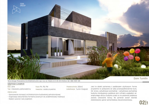 Architektura mieszkaniowa wielorodzinna, ostatnia realizacja w Kielcach przy ul. Poleskiej Zespół budynków mieszkalnych wielorodzinnych realizujemy również domy jednorodzinne w Tumlinie oraz przy ul. Poniatowskiego w Kielcach i w Domaszowicach. zapraszamy na naszą stronę www.teragroup.pl