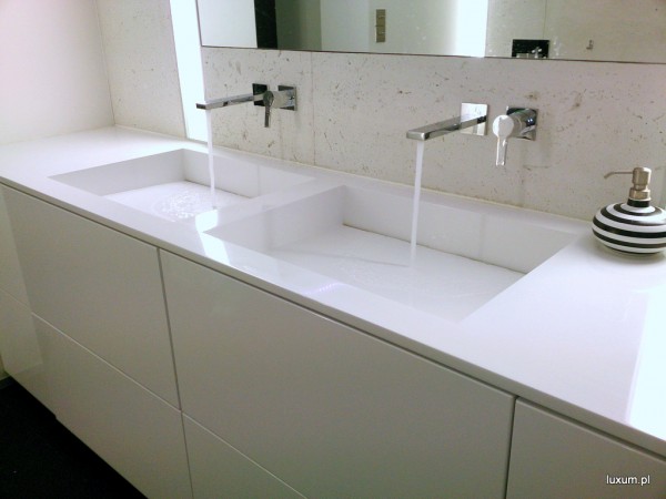 W naszej ofercie posiadamy różnorodne elementy wyposażenia łazienek - począwszy na meblach, blatach, umywalkach, wannach, brodzikach, armaturze na panelach ściennych z Corianu skończywszy.
