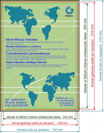 •projekt powinien być wykonany w kolorystyce CMYK ze spadami 2mm , czcionki powinny być zamienione na krzywe