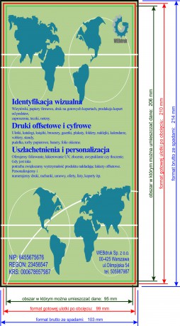 •projekt powinien być wykonany w kolorystyce CMYK ze spadami 2mm , czcionki powinny być zamienione na krzywe