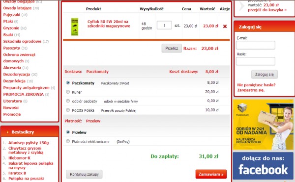 - Przesyłka kurierska pobraniowa: 22,00 zł