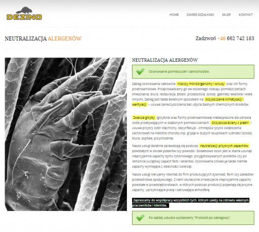 Firma Dezino specjalizuje się w usługach dezynfekcji, dezynsekcji i deratyzacji, oraz w handlu preparatami biobójczymi i dezynfektantami.