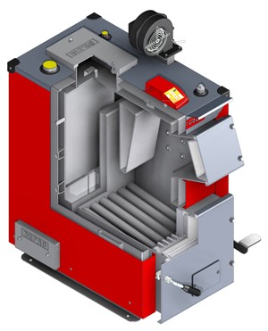 Wymiennik ciepła wykonany z blachy kotłowej P265GH który wpływa na trwałość kotła i jest izolowany wełną mineralną i osłonięty płaszczem z blach stalowych.