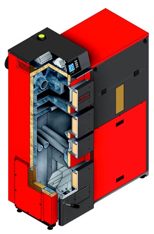 Dodatkowa komora utworzona przez stały ruszt chłodzony wodą, o grubości ścianki 8,8 mm, pozwala na okresowe spalanie innych paliwa – np. zrębek drewna – oraz rozruch kotła w sytuacjach awaryjnych. Kotły posiadają szereg czujników monitorujących jego pracę.