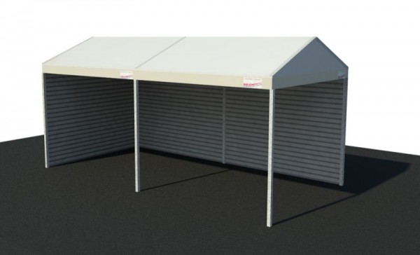 Hala Namiotowe, dach dwuspadowy wykonany z plandeki (materiał PVC), boki - blacha trapezowa T35 o grubości 0,5 mm