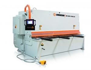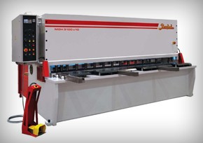 Szybka zmiana szczeliny między ostrzami pozwala na operowanie w pełnym zakresie podanych grubości materiałów. Zmotoryzowany tylny zderzak posiada zasięg 1000 mm o dokładności +/- 0,1 mm wyposażony jest w chowane palce umożliwiające cięcia arkuszy ponad wymiarowych.