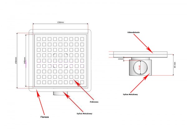 Cechami charakterystycznymi oferowanego produktu jest metalowy syfon dzięki, któremu wysokość zabudowy wynosi 6,5 cm (całkowita wysokość to 8 cm przy średnicy odpływu 4 cm); przepustowość syfonu wynosi 40 litrów na minutę; średnica syfonu to fi 40 (możliwość zmiany średnicy fi 50). Wybierając wpust w kształcie kwadratu mamy do wyboru 7 wzorów pokryw lub ruszt do którego wkleja się ceramiczną płytkę. Na powyższy produkt udzielamy gwarancji na okres 5 lat.
