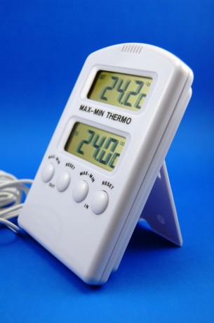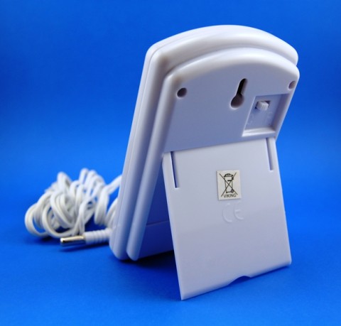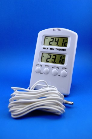Termometr cyfrowy z sondą do lodówki model 02 113. Posiada dwa czujniki umożliwiające pomiar temperatury we wnętrzu lodówki oraz na zewnątrz.