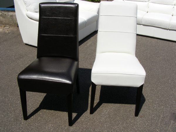 Wygodne krzesło wykonane ze skóry naturalnej, idealne do jadalni czy biura.