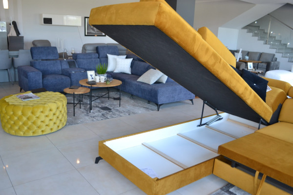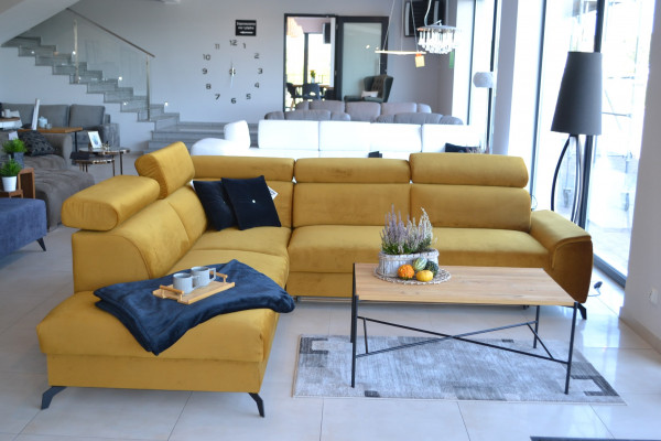 Narożnik Siella z funkcją spania wózkową oraz dużym pojemnikiem na pościel, to bardzo nowoczesny mebel. Idealnie sprawdzi się w dużym salonie. Jego wygląd sprawia, że idealnie wkomponuje się w obecny design.