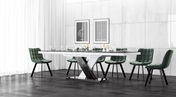 Stół Xenon Lux prezentuje nowoczesny design oraz posiada wiele możliwości zastosowania. Doskonale zaprojektowany – tradycyjne cztery nogi zostały zastąpione solidną podstawą w kształcie litery X. W swojej podstawowej formie ma następujące wymiary: długość: 160cm, szerokość: 89cm, wysokość: 75cm. Dzięki dwóm wkładkom umieszczonym pod blatem, istnieje możliwość wydłużenia stołu do 208cm lub 256cm. Stół został wykonany z najwyższej jakości materiałów, takich jak płyta MDF pokryta matą akrylową o zwiększonej odporności na zarysowania i działanie promieniowania UV. Płynne rozsuwanie blatu jest możliwe dzięki zastosowaniu najwyższej klasy prowadnic synchronicznych. Wpasowując się w nowoczesne trendy blat stołu został pogrubiony.