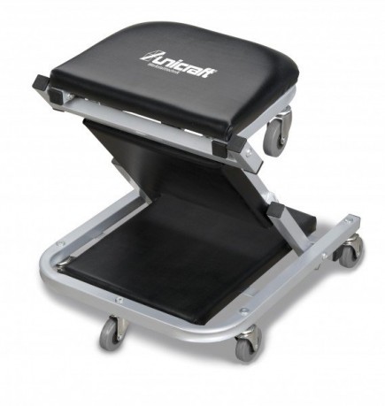 Solidna konstrukcja stalowa z siedmioma kółkami, wyścielana powierzchnia.