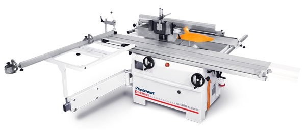 Korzyści: Nie skręcająca się stalowo-żeliwna konstrukcja. Żeliwny stół maszyny, hartowany i oszlifowany. Płynne prowadzenie aluminiowego wózka, z 10 letnią gwarancja na zużycie się szyn prowadzących. Aluminiowa prowadnica teleskopowa z regulacją kąta.