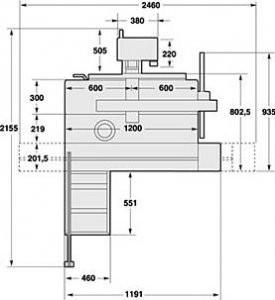 Max. szerokość cięcia na lewo od piły 1200 mm