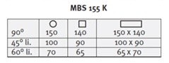Zakres cięcia 0° prostok. 150 x 140 mm