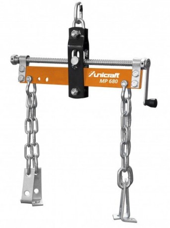 Pozycjoner silnika Unicraft MP 680. Możliwość łączenia z żurawiami warsztatowymi podczas montażu/demontażu silnika. Szybkie znalezienie środka ciężkości dzięki praktycznej korbie poruszającej pozycjoner w poziomie po przekładni ślimakowej. Cztery ciężkie łańcuchy umożliwiają dogodny sposób montażu silnika. Niewielka masa umożliwia łatwą obsługę.