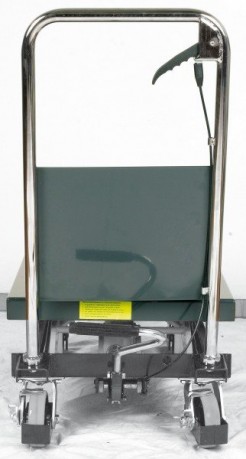 Wytrzymała stalowa konstrukcja Pozwala na elastyczną i komfortową pracę Prosty w obsłudze pedał nożny umożliwia wzniesienie stołu na pożądaną wysokość Możliwość manualnego obniżenia stołu Solidne kółka z osłoną ochronną hamulców na obu kółkach kierujących umożliwiają zachowanie większego bezpieczeństwa podczas załadunku i rozładunku Zawór bezpieczeństwa pomaga chronić operatora maszyny, a także pompę.