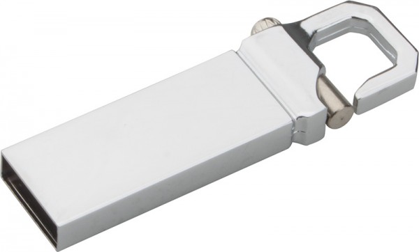 Metalowa, stylowa pamięć USB. Praktyczny karabińczyk pozwala wygodnie przyczepić pendrive do kluczy.