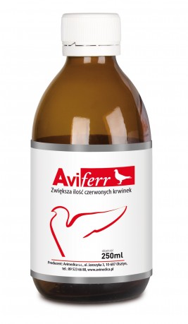 AviFerr to precyzyjnie zbilansowany preparat przeznaczony dla gołębi sportowych oraz piskląt. Produkt pobudza układ krwiotwórczy do syntezy hemoglobiny zwiększając tym samym udział czerwonych krwinek, co dodatnio wpływa na wymianę gazową w płucach i zapewnia lepsze utlenowanie krwi. Dodatkowo preparat stymuluje procesy energetyczne, metabolizm tłuszczów i węglowodanów oraz syntezę białek, co dodatnio wpływa na wzrost i rozwój piskląt.