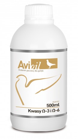AviOil to mieszanina naturalnych olejów pochodzenia zwierzęcego i roślinnego. Zawarty w preparacie tran produkowany jest wyłącznie z ryb morskich (łosoś, dorsz, makrela) i jest źródłem cennych składników odżywczych takich jak niewystępujące w olejach roślinnych Niezbędne Nienasycone Kwasy Tłuszczowe (NNKT) oraz witaminy rozpuszczalne w tłuszczach (A, D3, E, K). Warto podkreślić, że NNKT (Ω-3, Ω-6) muszą być dostarczone organizmom gołębi z karmą, ponieważ nie potrafią one same ich syntetyzować, a kwasy te stanowią ok. 60% masy mózgu. Z kolei obecny w preparacie olej sojowy jest bogatym źródłem lecytyny, co zdecydowanie poprawia koncentrację gołębi pocztowych. Jest doskonałym komponentem do natłuszczania karmy, poprawia jej wartość energetyczną oraz smakowitość. Warto pamiętać, że energia gołębia na krótki lot czerpana jest z węglowodanów, natomiast podczas długotrwałego wysiłku (loty powyżej 450 km) po wyczerpaniu rezerw cukrowych gołębie czerpią energię właśnie z tłuszczy.