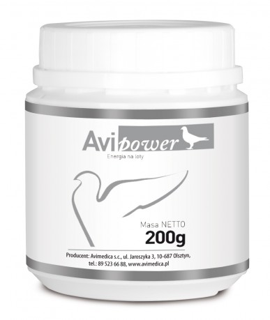 AviPower to kompozycja witamin i łatwo wchłanialnych węglowodanów. Cukry stanowią główne źródło energii na loty krótkodystansowe oraz pierwszą rezerwę energetyczną w lotach długodystansowych. Po ich wyczerpaniu gołębie wykorzystują rezerwy energetyczne zgromadzone w tłuszczach. Zawarte w preparacie witaminy z grupy B są naturalnymi katalizatorami wielu szlaków w organizmie w tym również szlaków anabolicznych w przemianach energetycznych. Z kolei witamina C należy do naturalnych antyoksydantów, wyłapujących wolne rodniki i zapobiegających procesom degradacji tkanek organizmu. Ptaki potrafią syntetyzować witaminę C w organizmie jednak podczas stresu jaki towarzyszy lotom konkursowym oraz upałów zapotrzebowanie na nią wzrasta.