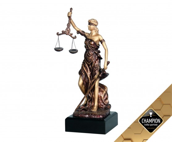 Znakomita figurka odlewana Temida, wysokość 25,5 cm zamontowana na solidnej czarnej podstawie. W komplecie z figurką otrzymasz aluminiową tabliczkę (złotą lub srebrną) z dedykacją.