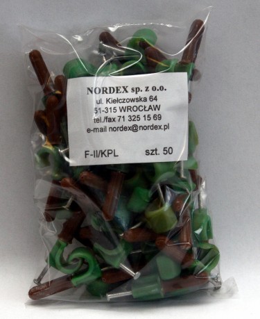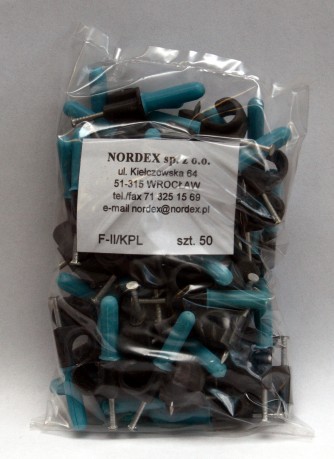 W opakowaniu 50 sztuk w kolorze (uchwyt +kołek).