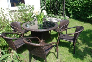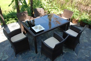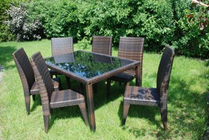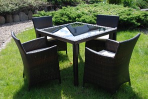 Meble technorattanowe wykonane z poliuretanowej plecionki na konstrukcji aluminiowej. W przeciwieństwie do tradycyjnych mebli ogrodowych nie wymagają żadnej pielęgnacji. Nie szkodzą im zmienne temperatury, słońce, deszcz, oraz mróz czy śnieg. Czyszczenie ich strumieniem wody z węża ogrodowego lub wilgotną ścierką nie stanowi żadnego problemu. Konstrukcja wykonana jest z aluminium -wytrzymała, lekka i odporna na rdzę. Materiał użyty do okryć poduszek wykonany jest z bawełny.
