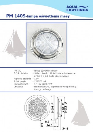 lampa oświetlenia mesy, 18 led ,140mm, odporna na wodę morską,korozję,wibracje