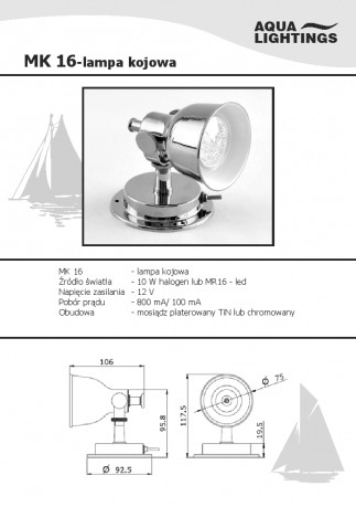kinkiet, lampa kojowa, led MR 16, odporna na korozję, montaż powierzchniowy