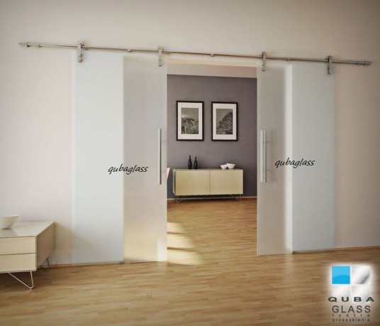 Drzwi przesuwne Rurowe podwójne SZKLANE ZE SZKŁA na wymiar
